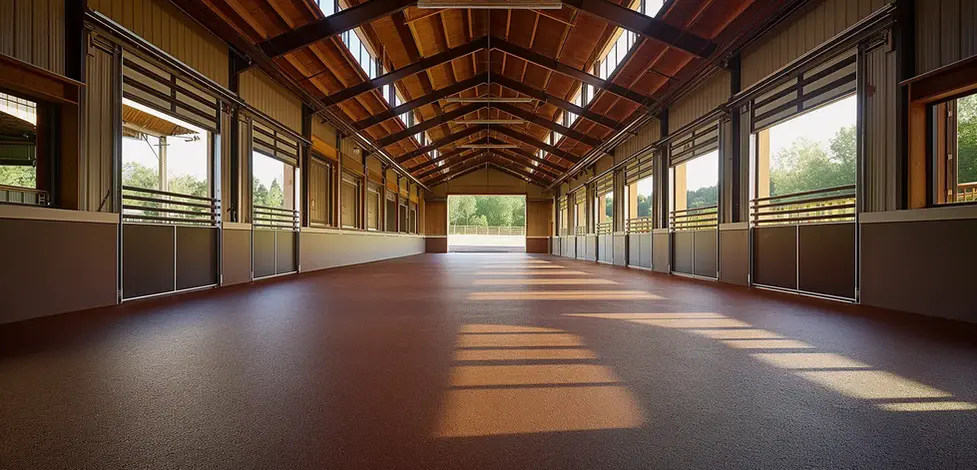 Our rubber flooring provides superior shock absorption and anti-slip properties, minimizing the risk of injury from slips, falls, and hard impacts—especially important in areas with frequent hoof traffic.